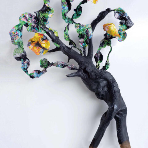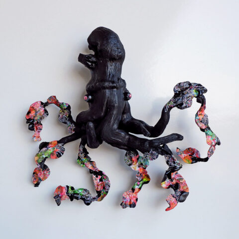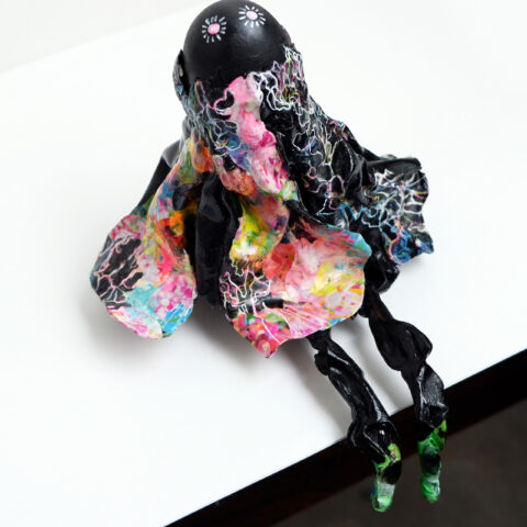人を見た目で判断する世の中に辟易し、明かりのない夜のように真っ黒の世界にいれば人の顔も見えないことに気づき、全てのモチーフを真っ黒に塗ることにした。外的情報を遮断しその物と向き合った時に本当に生きている気がした。